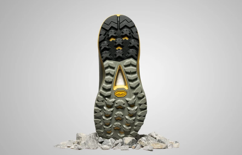 Der robuste externe EVA-Exoshell-Rahmen schützt Fuß und Zwischensohle vor Steinen und Geröll.